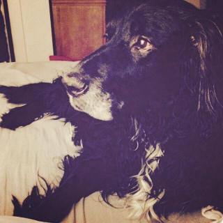At a little after five, I gave up and walked downstairs. Victor heard me coming down and whistled his tune softly. I didn’t hear anything else. Turning the corner, I could see Darby still on his bed in the same position I’d left him in. And as I got closer, I realized he wasn’t breathing. Touching him- he was cold. He’d gone. Those last couple of tail thumps were his goodbye, I guess.